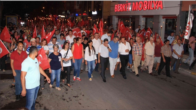 Gümrük Meydanında toplanan binlerce Edremitli Çayiçi Caddesi, Cumhuriyet Meydanı, Yılmaz Akpınar Bulvarı üzerinden Şehit Hamdibey Meydanına kadar ellerinden fenerler ile yürüdü. Geniş güvenlik önlemlerinin alındığı fener alayı sonrasında Tolga Çandar konseri gerçekleştirildi. Düzenlenen fener alayına Edremitlilerin büyük ilgi gösterdiği gözlendi.