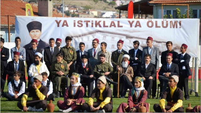 Ayvalık’taki Cumhuriyet Bayramı töreni Ayvalık Atatürk Anadolu Lisesi Okulu öğrenci ve öğretmenlerinin gerçekleştirdikleri Kurtuluş Savaşı ve ardından Cumhuriyetin kurulmasına ait süreci anlatan 1 saat 15 dakikalık gösterimle sona erdi.