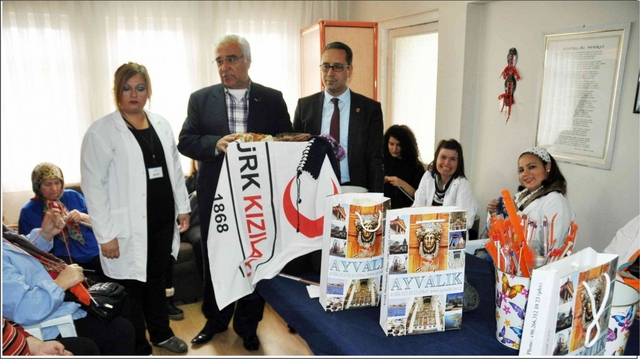 Türk Kızılayı ve Ayvalık Belediyesi tarafından Ayvalık'ta da başlatılan “Gönül Örgüsü: Her İlmek Bir Mutluluk Demek” kampanyasında veliler ve engelliler tarafından örülen kazak, kaşkol, bere ve eldivenler sokakta yaşayan kimsesiz çocuklara ulaştırılacak.