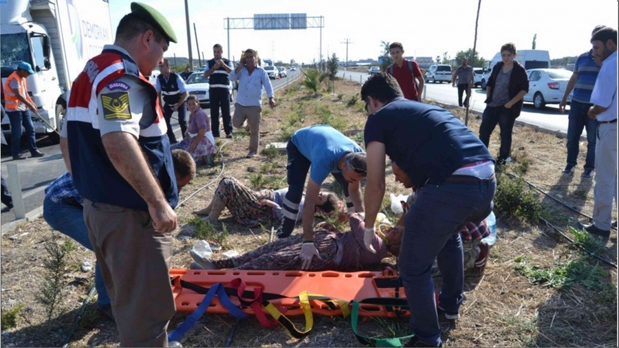 Alınan bilgiye göre, saat 15.30 sıralarında Çanakkale ile İzmir’i birbirine bağlayan E-87 karayolunun Ayvalık sapağında Orhan Yılmaz yönetimindeki 34 HT 5396 plakalı kamyon, zeytin işçilerini taşıyan Yücel Duman yönetimindeki 10 DAS 56 plakalı minibüse kırmızı ışıkta beklerken arkadan çarptı. Kazada minibüste bulunan 25 zeytin işçisinden 17’si ve kamyon şoförü Orhan Yılmaz yaralandı. Kazada yaralanan kamyon şoförü ile Balıkesir merkeze bağlı Ortamandıra köyünden geldikleri öğrenilen Şengül Girgin (53), Metin Soydan (38), Pınar Soydan (34), Gülay Soydan (18), Nevruz Girgin (58), Seyfi Keskin (52), Alican Keskin (48), Esat Aydın (43), Cemile Aydın (48), Gülizar Aydın (33), Gülduran Can (74), Neşegül Can (48), Serkan Can (45), Fatma Gündüz (43), Gülşen Özçelik (45), Zeynep Altun (39), Ege Çakan (12) isimli zeytin işçileri, ambulanslarla Ayvalık Devlet Hastanesi’ne kaldırıldı. Yaralılardan 2'sinin hayati tehlikesinin bulunduğu öğrenildi.