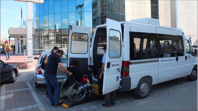 Arka bölümünde hidrolik asansörlü sistem ile engelli vatandaşların tekerlekli sandalyesinden inmeden minibüse rahatlıkla kullandıkları servisten engelli vatandaşlar, belediyenin iletişim numaralarına haber vererek ücretsiz olarak faydalanıyorlar. Günün 24 saati hizmet veren araç ile engelli vatandaşları adreslerine alıp, tekrar geri bırakıyor.