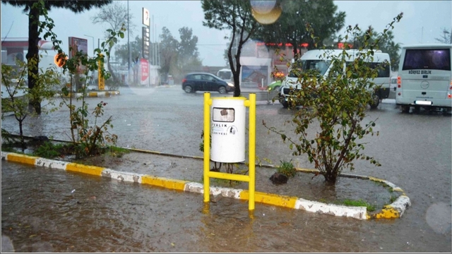 Ayvalık’ta şiddetli yağış sırasında meydana gelen hortum ağaçları devirip çatıları uçurdu. Ayrıca ev ve işyerlerini sular bastı.